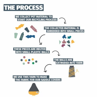 La housse de selle vélo en matériau recyclé est de coloris gris et jaune. À la fois original et tendance pour customiser son cycle avec style !